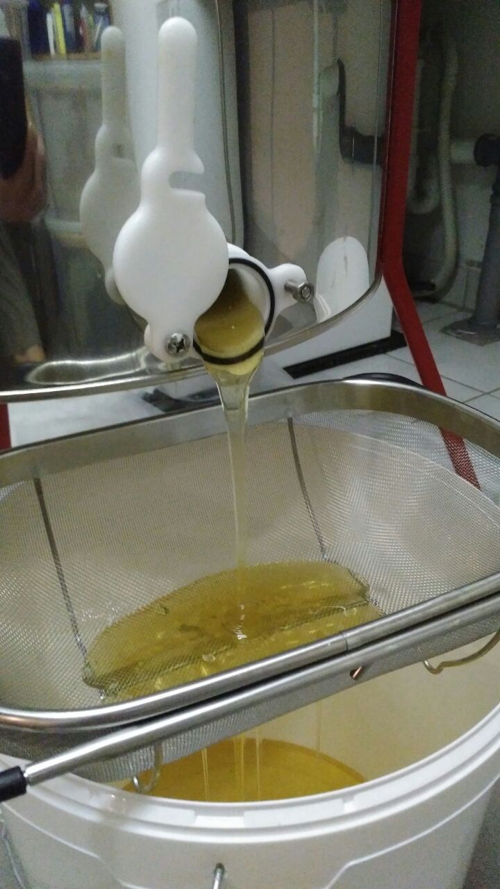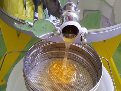 07/2017 R. Hogen:Der Lohn der Imker. Der Honig fließt in die Kübel. Auf das sie voll werden.
