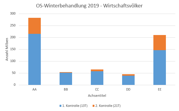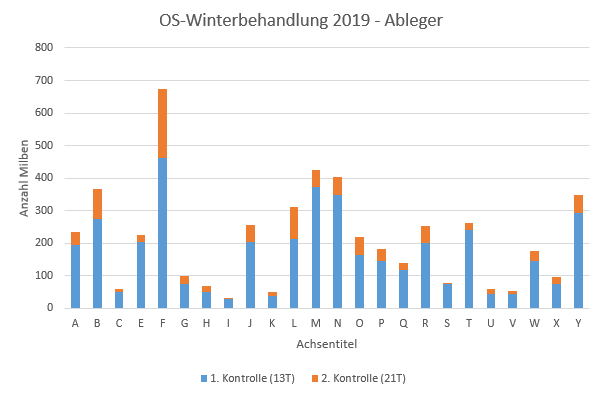 - Eine korrekt ausgeführte OS-Winterbehandlung hat eine Langzeitwirkung. Wer nur einmal die Anzahl der gefallenen Milben zählen will, sollte dies frühestens 20 Tage nach dem Behandlungstermin tun.