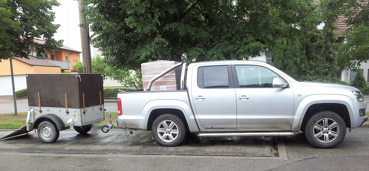Wieder mal habe ich eine Lektion zum Thema "Ladungssicherung" gelernt. 800 kg Bienenfutter in Kartons, auf einer Euro-Palette mit Spannfolie zusammengehalten und quer auf die Ladefläche gestellt. Wer würde da vermuten, dass diese Ladung nicht sicher auf der Ladefläche steht?