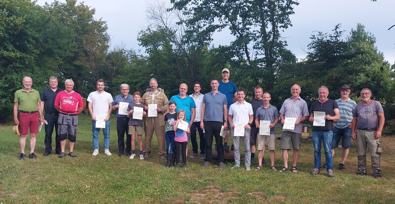 Gestern haben wir nach 15 Monaten unseren Neuimkerkurs 2022 abgeschlossen und zwanzig Teilnehmerinnen und Teilnehmer in die "Selbständigkeit" verabschiedet. Wie beim letzten Kurs konnte wieder ein eigenes Volk auf dem Vereinsgrundstück aufgestellt werden und unter Anleitung der Betreuer wurden im Jahresverlauf die praktischen Arbeiten am Volk vermittelt. Es wurden