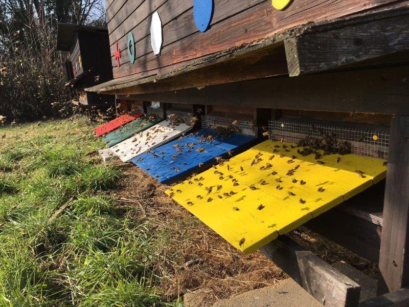 Nach einer Kälteperiode von immerhin rund zwei Wochen war es heute soweit. Bei 9°C und Sonnenschein gab es sowohl für Bienen, als auch für die Imker kein Halten mehr. Emsiger Flugbetrieb und es war unschwer zu erkennen, dass die Bienen den Reinigungsflug dringend notwendig hatten.
