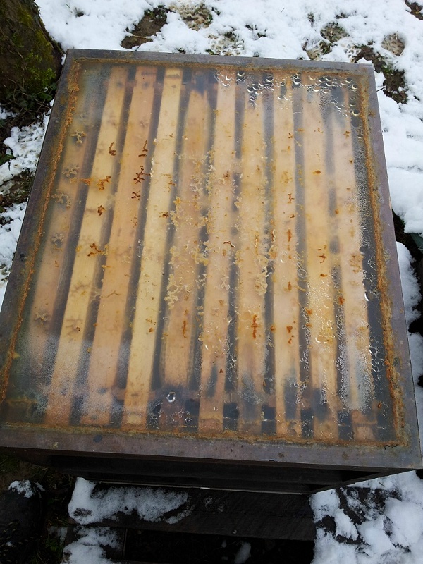 Und wenn man schon am Bienenstand ist, dann macht man die Fluglöcher frei und prüft über das Gewicht die Futterreserven der Völker. Wieder mussten wir an einem Volk (Brüter!) eine Futterwabe nachlegen, weil der Futtervorrat beängstigend geschrumpft war.