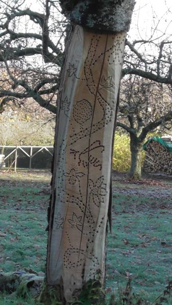 Die Wildbienenhotels sollen nicht nach dem allseits bekannten Muster gebaut, sondern auf Basis von natürlichen alten Baumstämmen entstehen. Damit hat die ganze Sache auch noch einen künstlerischen Aspekt.