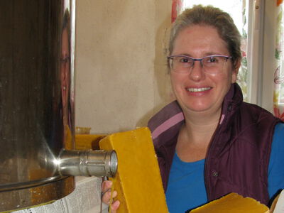 07/2017 R. Hogen:Der Lohn der Imker. Der Honig fließt in die Kübel. Auf das sie voll werden. -