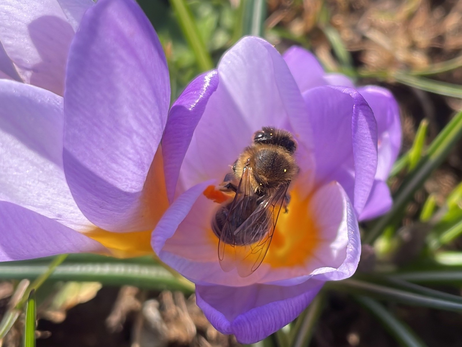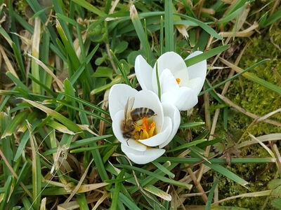 03/2022 Christoph Braun: hat im letzten Jahr am Bienenstand Krokuszwiebeln eingepflanzt - mit Erfolg. Das Bild ist vom letzten Sonntag. -