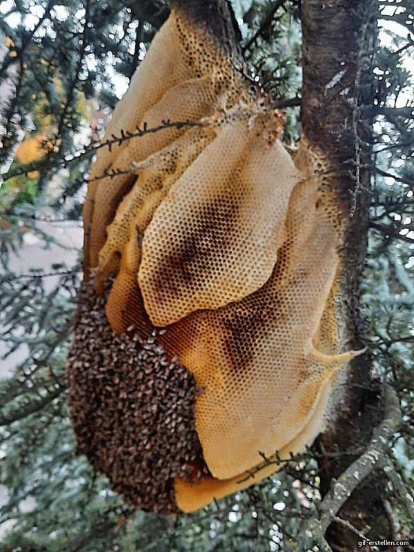 08/2020 Bernd Leutert: Nicht nur die Bienen, auch die Bäume, leiden unter der anhaltenden Hitze. Hier ist es für den Bienenstock gerade nochmal gut gegangen ! -