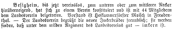 Erste Erwähnung des Vereins in der Zeitschrift "Bienenpflege".