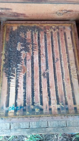 Die Lage des Flugloches oder Sonneneinstrahlung auf den Kasten können Völker dazu verleiten, ihr Brutnest seitlich versetzt anzulegen. Manchmal ist es so extrem, dass Völker ganz am Rand sitzen (siehe Bild). Der Futternachschub erfolgt dann nur einseitig, was dazu führt, dass die Wege zum Futter immer länger werden. Ist das Brutnest in der Mitte und der Futternachschub erfolgt von links und rechts aus beiden Richtungen, dann sind die Wege zum Futter halb so lang.