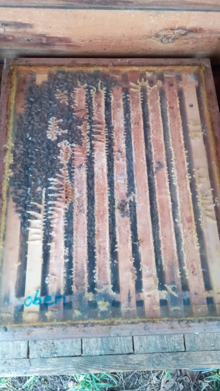 Es sind oft die stärksten Völker, die auf diese Weise verhungern, da diese jetzt größere Brutnester anlegen und dadurch einen größeren Futterbedarf haben. Uns selbst ist auf diese Weise schon ein schönes Volk eingegangen und Erich Schilling hat nach Anheben des Deckels innerhalb von einer Sekunde gesehen, was der Grund war. Das Volk saß damals ganz an der Seite, weil dort tagsüber die Sonne auf den Kasten schien. Deshalb...