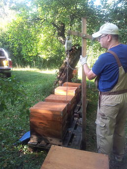 - Die Beute zunächst vom Boden "losbrechen". Manche Beuten kleben auf der Unterlage und man denkt dann: "Mensch ist die schwer!!!".