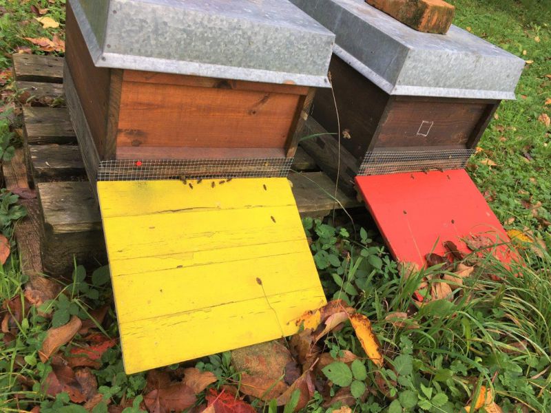 Gestern habe ich bei bestem Flugwetter die Mäusegitter angebracht - so spät im Jahr wie selten zuvor. Es herrschte reger Flugbetrieb (November!) und da ist einem nicht so wohl, wenn man am Flugloch hantieren muss. Aber es hat den Vorteil, dass man sicher sein kann, keine Maus im Bienenkasten einzusperren.