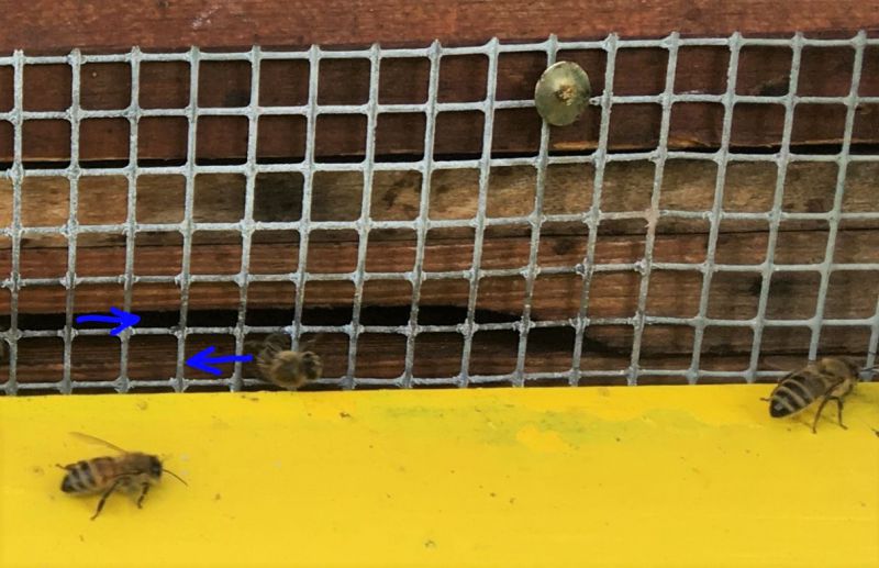 Und selbst bei so einfachen Arbeiten kann man Fehler machen, die fatale Folgen haben können. Je nach Gitterabstand und Fluglochhöhe kann es bei ungünstiger Montage dazu kommen, dass der Spalt des freien Durchgangs für die Bienen zu klein wird.